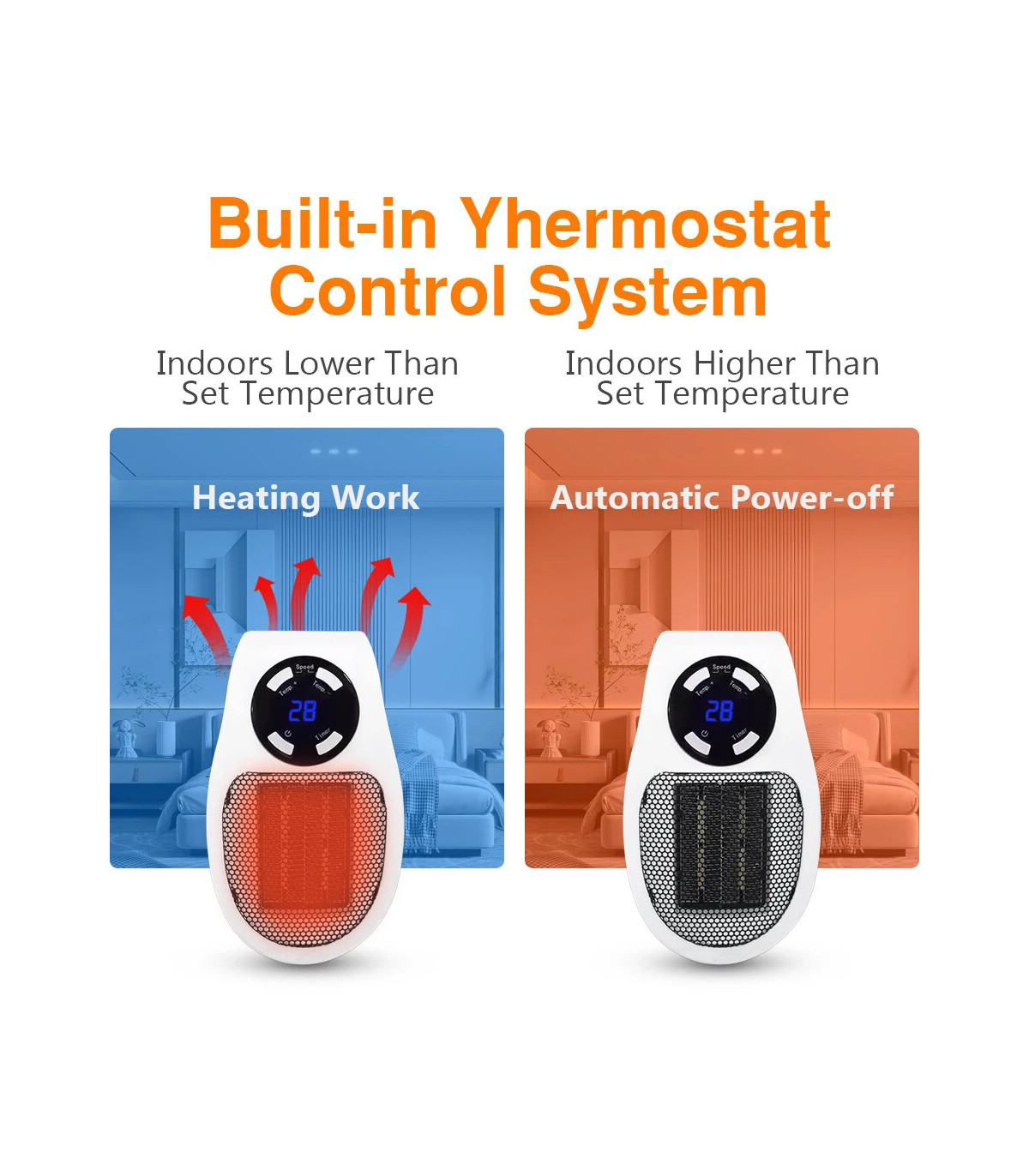 [Geringer Stromverbrauch] Die Heizung nutzt eine geringe Leistung von 500 Watt, was energieeffizienter und kostengünstiger ist als eine Heizung mit hoher Leistung. Außerdem wird der Stromkreis nicht überlastet. Perfekt für Menschen in milden Klimazonen