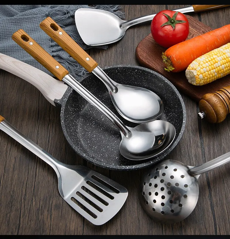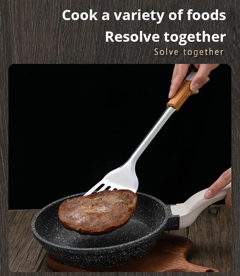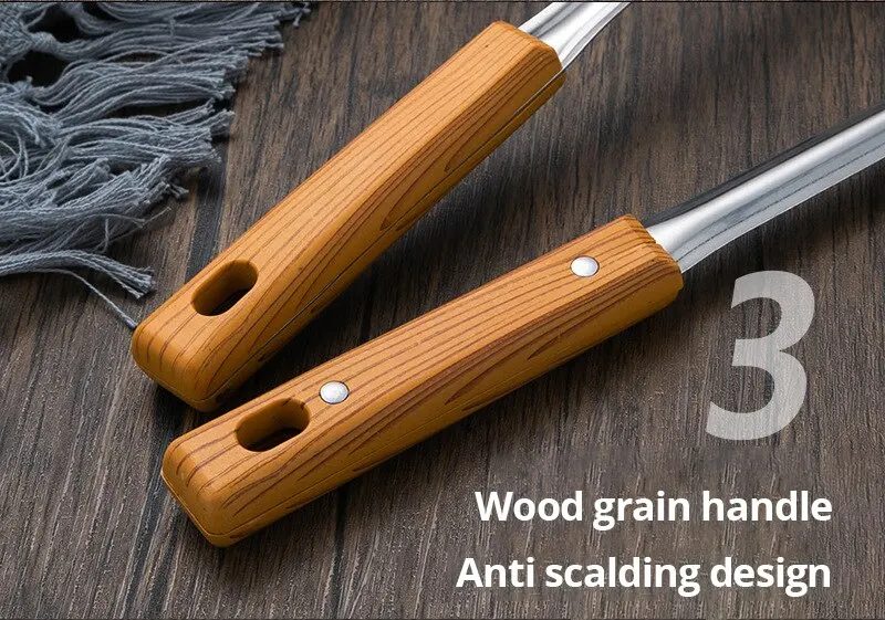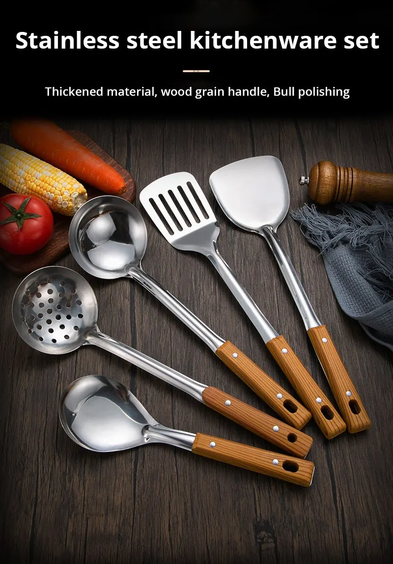 [Leaky shovel] Spatule à manche en Imitation de Grain de bois en acier inoxydable, pelle qui fuit, cuillère 5 outils pour la cuisine légère, outils de cuisine 1 pièce Ce produit correspond uniquement à la première image. Caractéristiques : 1.Pas facile à cuisiner, conception légère 2.Les bords sont délicatement polis, arrondis et ne font pas mal aux mains 3.La poignée arrondie est faite d'un matériau anticorrosion, isolant thermique et durable 4.[Leaky shovel] Spatule à manche en Imitation de Grain de bois en acier inoxydable, pelle qui fuit, cuillère 5 outils pour la cuisine légère, outils de cuisine 1 pièce