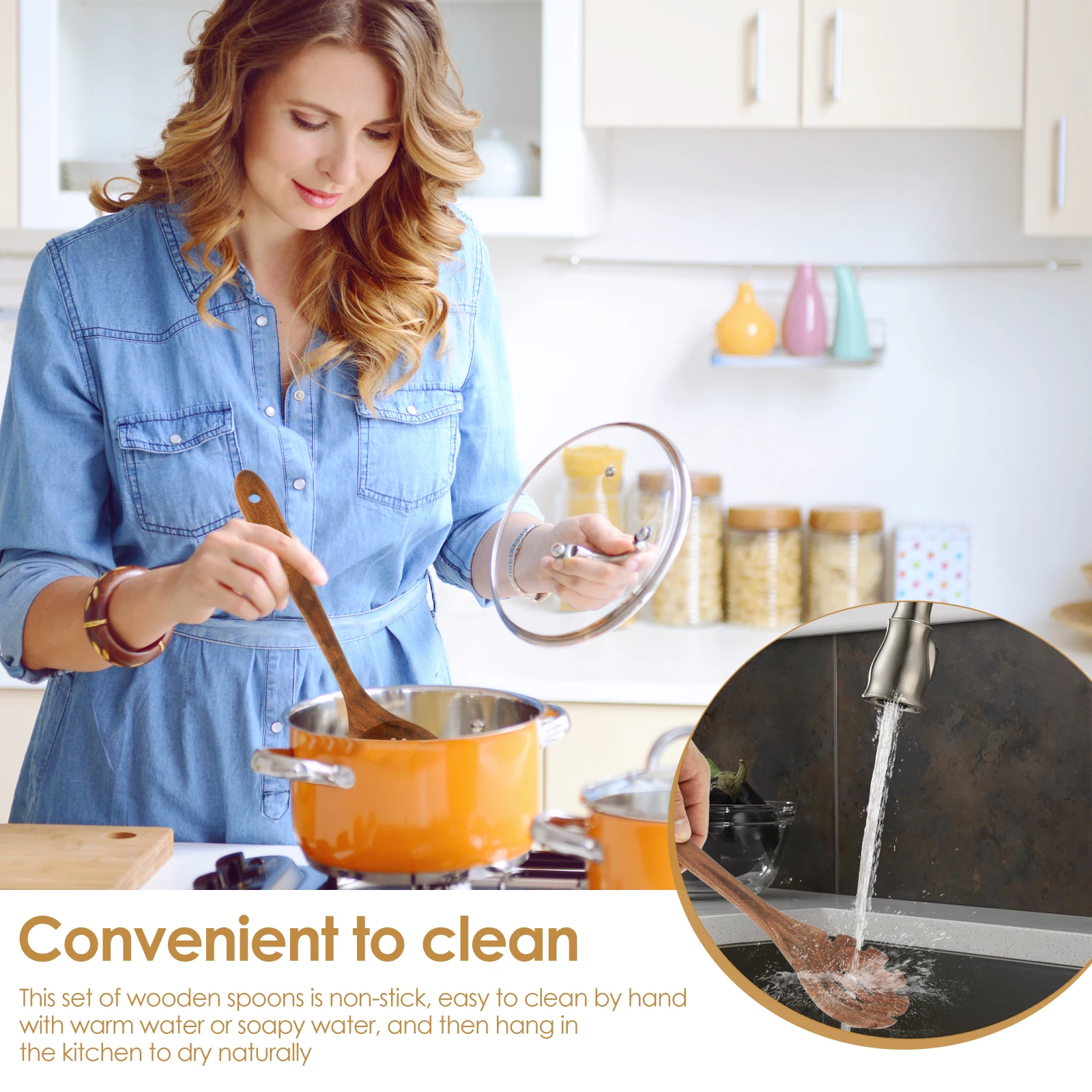 Rangement facile à nettoyer : ces cuillères en bois antiadhésives sont faciles à nettoyer à la main avec de l'eau tiède savonneuse, puis sèchent naturellement à l'air dans la cuisine.Les trous dans chaque poignée permettent de l'accrocher ou de le ranger facilement sur un étagère à ustensiles, gardant votre cuisine organisée