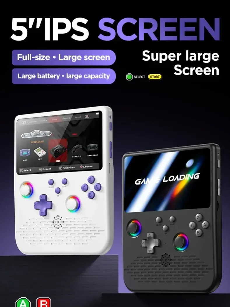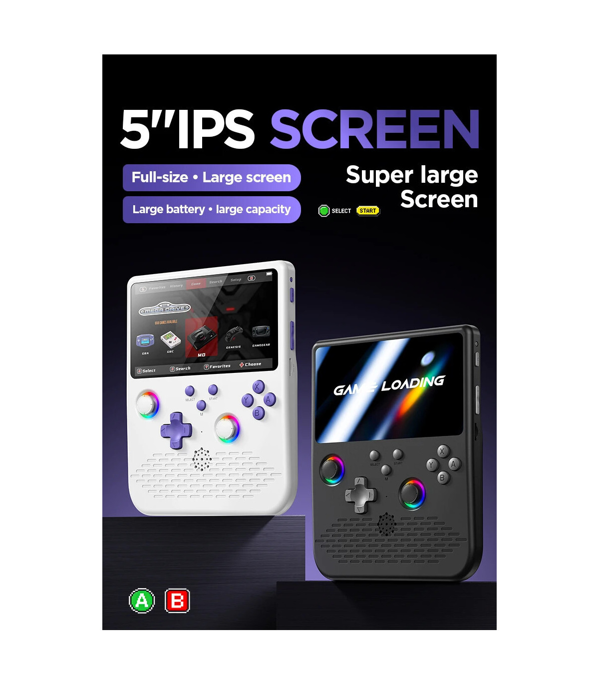 Lire la suite[Weiß und Lila] Tragbare Retro-Spielekonsole H5, tragbarer Spielautomat, 5-Zoll-Bildschirm, 64 GB, über 14.000 Spiele, spielen Sie jederzeit und überall