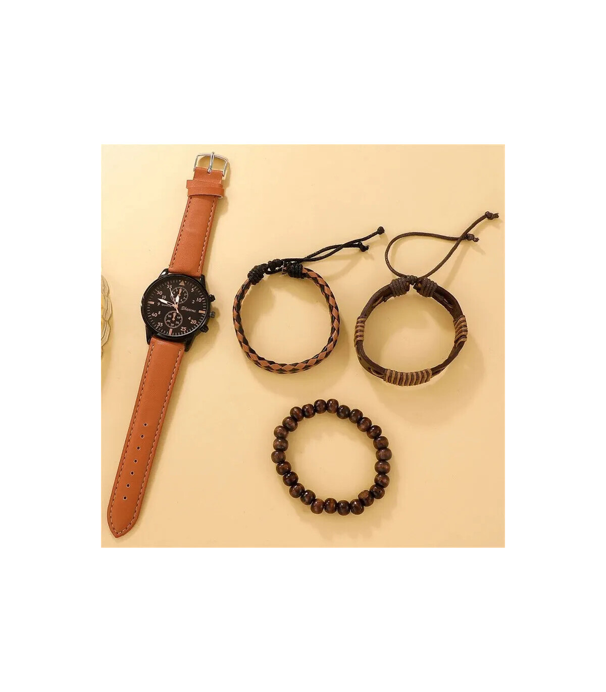 Lire la suite[Schwarz] Neue Herren Luxusuhrenarmband-Set für Geschäftsmodus Braun Leder Quarzuhren für Herren Geschenk Relogio Masculino