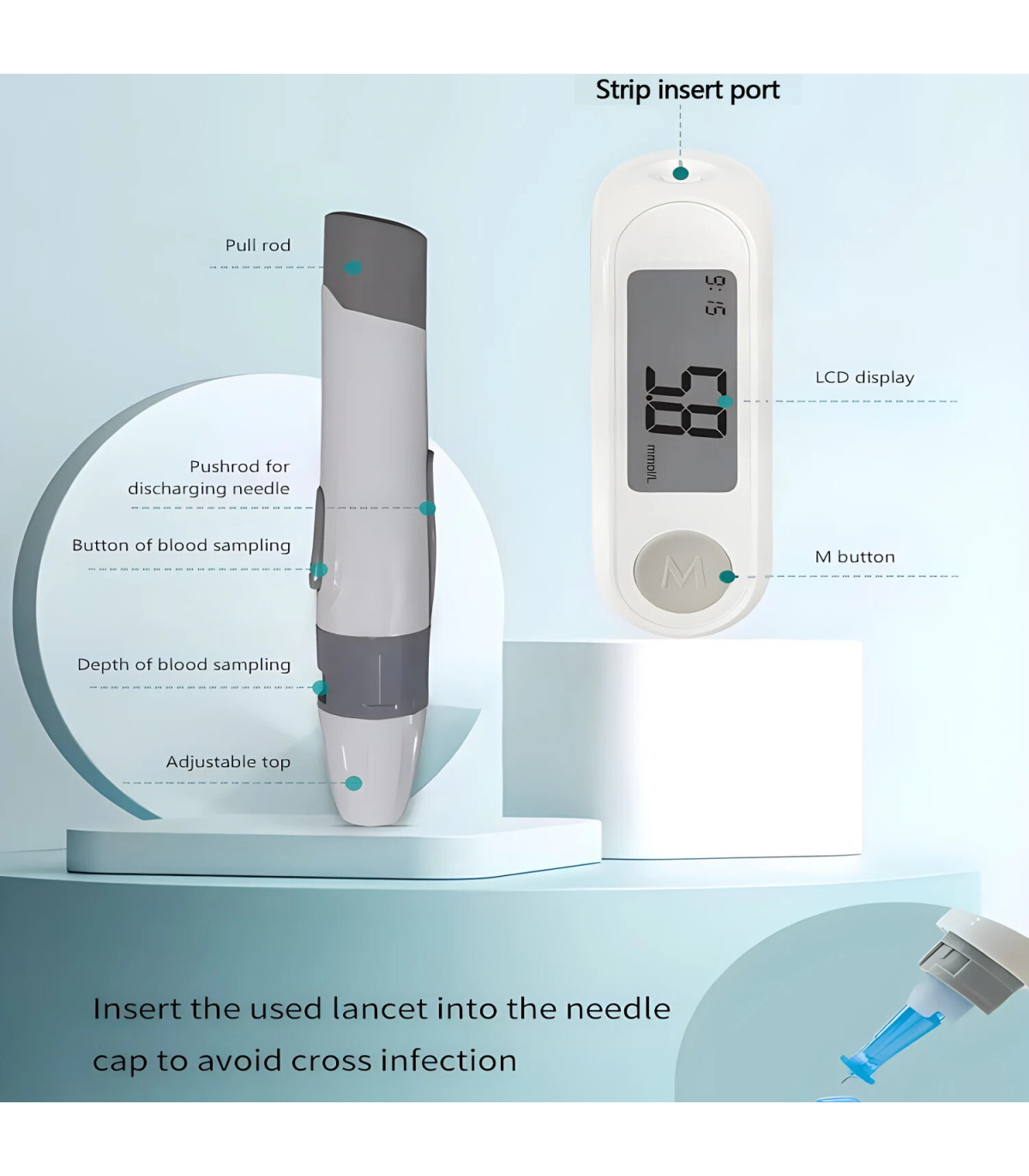 • Einfach zu bedienende Lanzettenmaschine:Die Lanzettenmaschine ist benutzerfreundlich, erleichtert die Diabetes-Tests und reduziert den Bedarf an professioneller Hilfe.