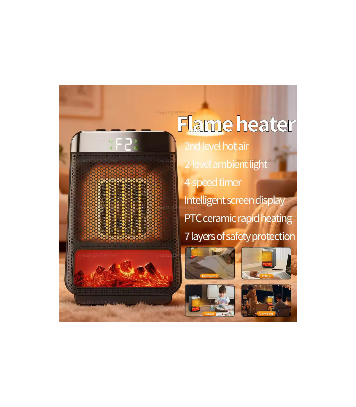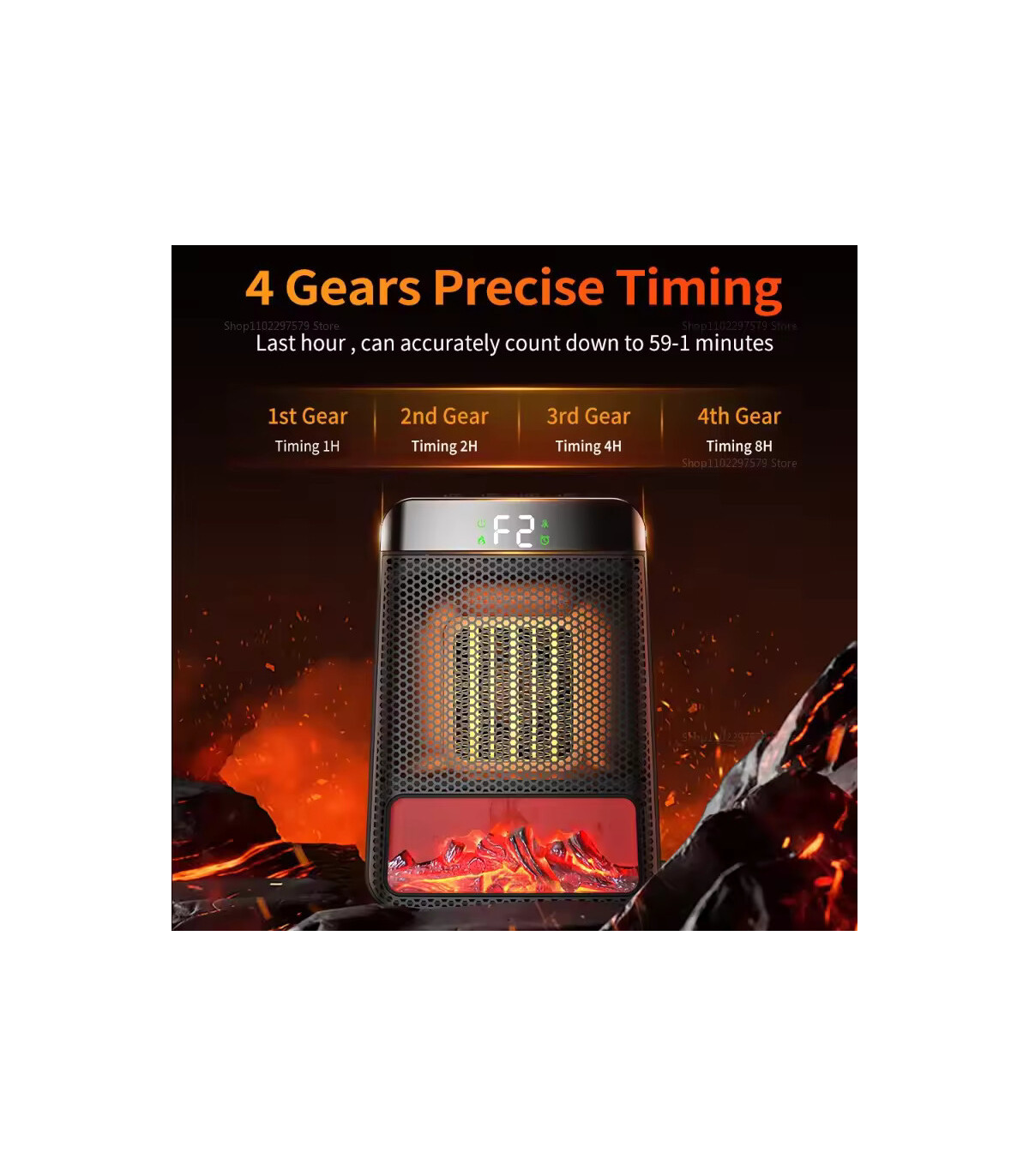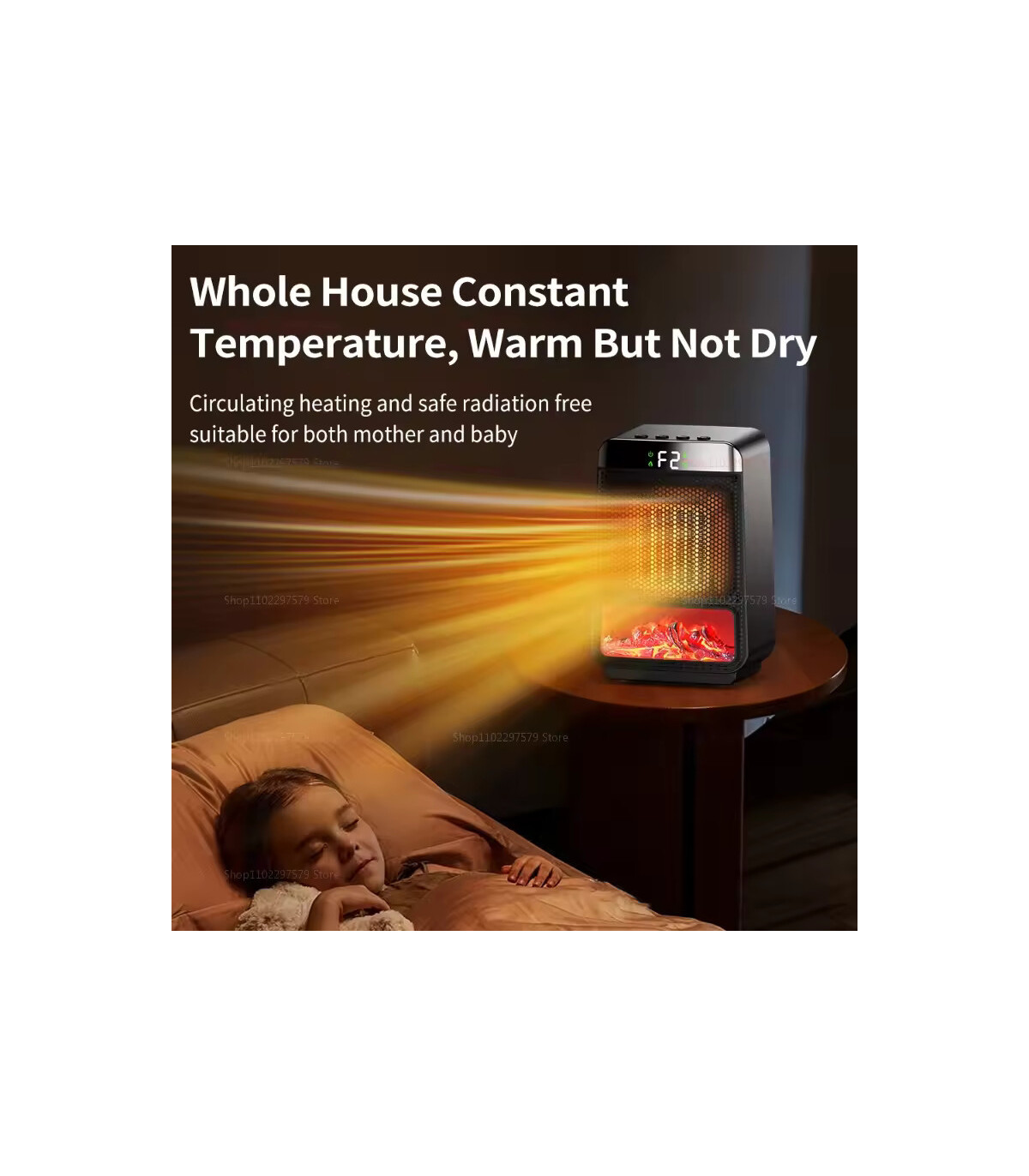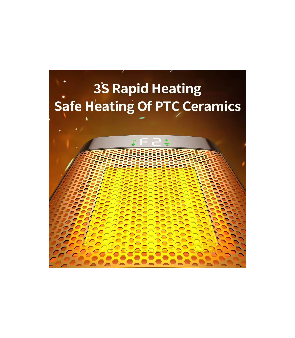 Portable 1500W electric hot air fan heater with thermostat for office home bedroom space heater 3s fast heating - black, EU Presentation