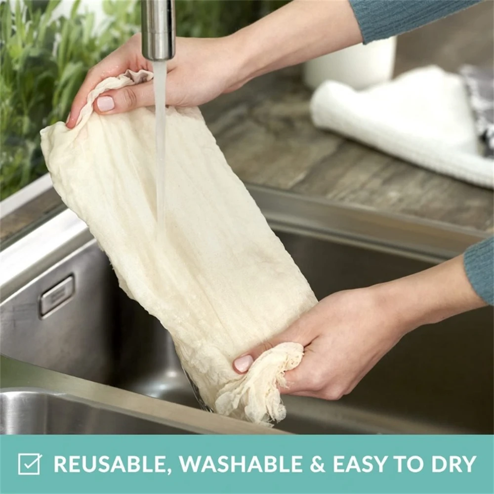 2. Versatile use: this cotton bag is not limited to making nut milk. It can be used for a variety of culinary applications such as filtering homemade juices, preparing smoothies, and even for cooking purposes like infusing tea or infusing oils with herbs and spices. Its versatility makes it an essential tool in any kitchen, offering multiple uses that enhance your cooking and food preparation experiences.