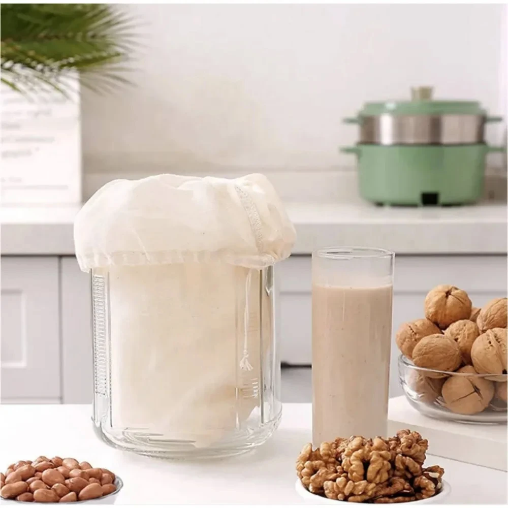 4. High efficiency in straining: the fine mesh of the cotton bag ensures that the straining process is very efficient, capturing even the smallest particles. Whether it's nut milk, juice, or any other liquid you're straining. The bag's design allows for maximum liquid flow while effectively separating solids.