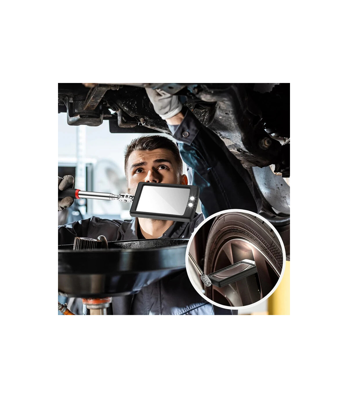 4. 360° Rotating round and square inspection mirrors: premium quality glass mirrors for perfect reflection; fully articulated ball joint holds mirrors for 360° free swinging; square mirror includes LED lights for easy inspections in dark areas.