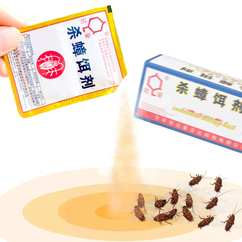 Utilisation de la méthode: Divisez 1 pack en 3 ou 4 parties et localisez-les à l'endroit où se trouvent les cafards.Le total des cafards sera tué par infection dans les trois jours après avoir mangé la poudre.L'effet signtifiant peut durer trois mois.