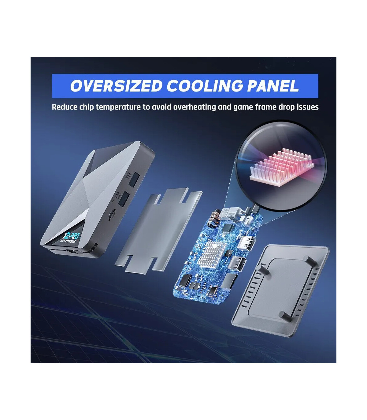 We specially designed an oversized heat sink for the Super x2 pro console, which improves heat dissipation efficiency by 30% and avoids game lag caused by chip overheating.