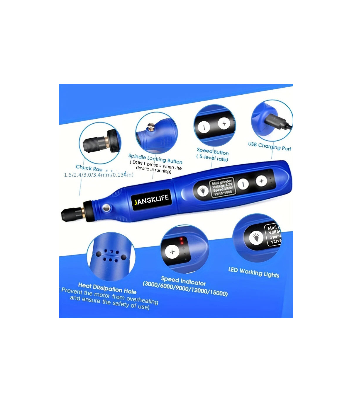 Lire la suite[Black-115pcs] JANGKLIFE USB Rotary Tool Kit Cordless Engraving Pen for DIY Wood Jewelry Metal Glass Mini Cordless Drill