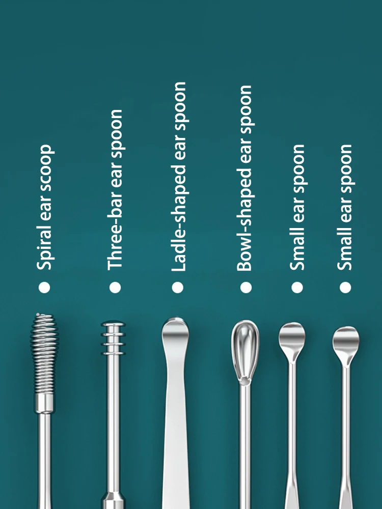 • 6-piece ear set: This set includes six different ear spoons, making it a complete tool for cleaning and picking your ears.