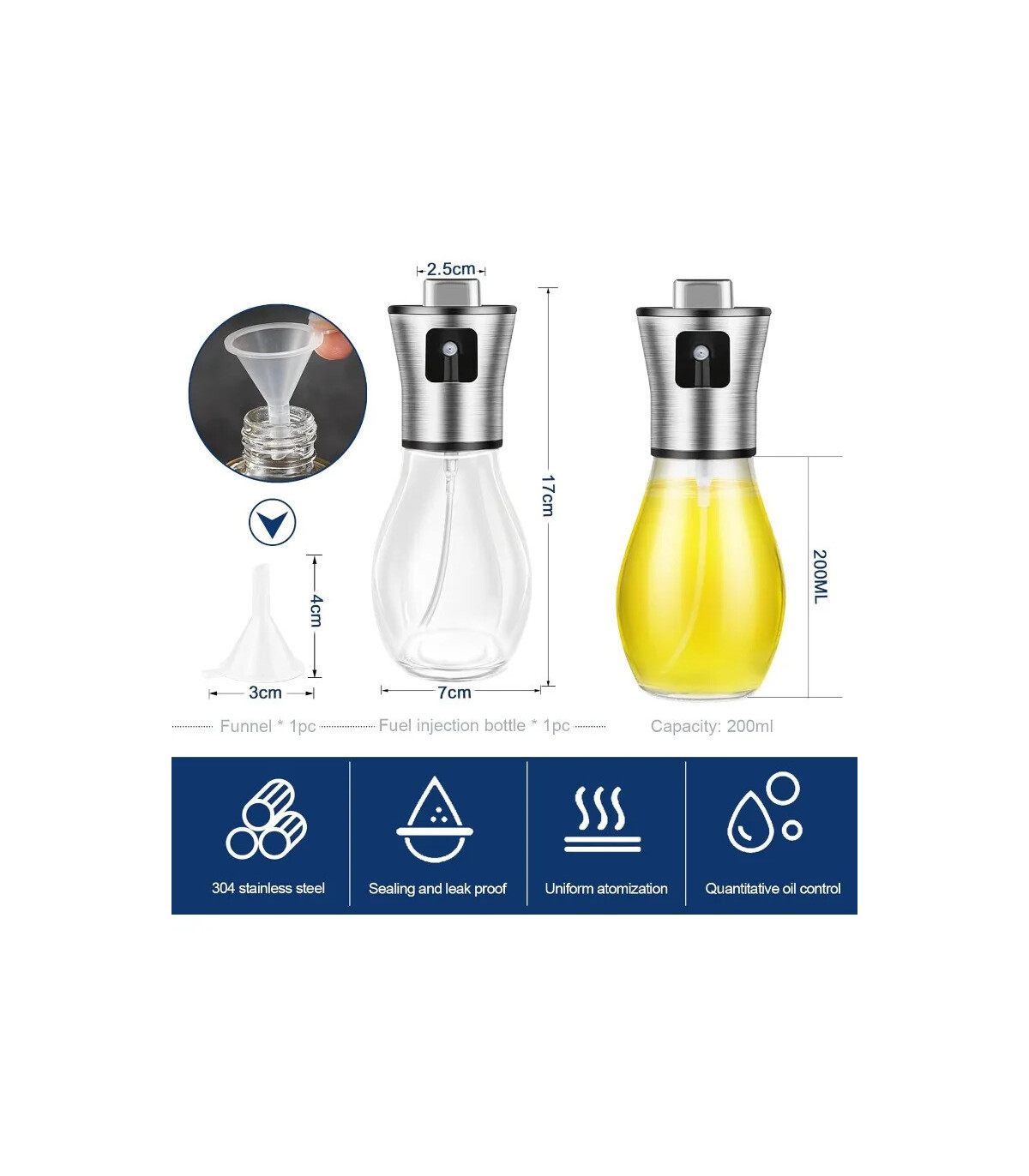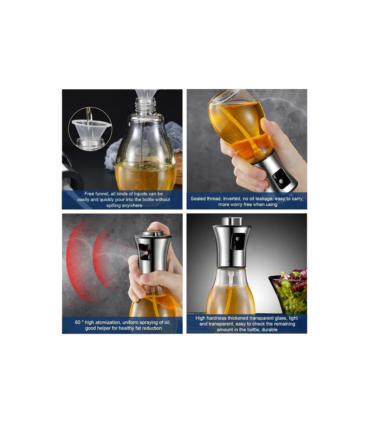 Lire la suite[Pulverizador de aceite para cocinar, pulverizador de aceite de oliva de 200ML, botella pulverizadora de aceite de acero inoxidable, gadgets de cocina portátiles