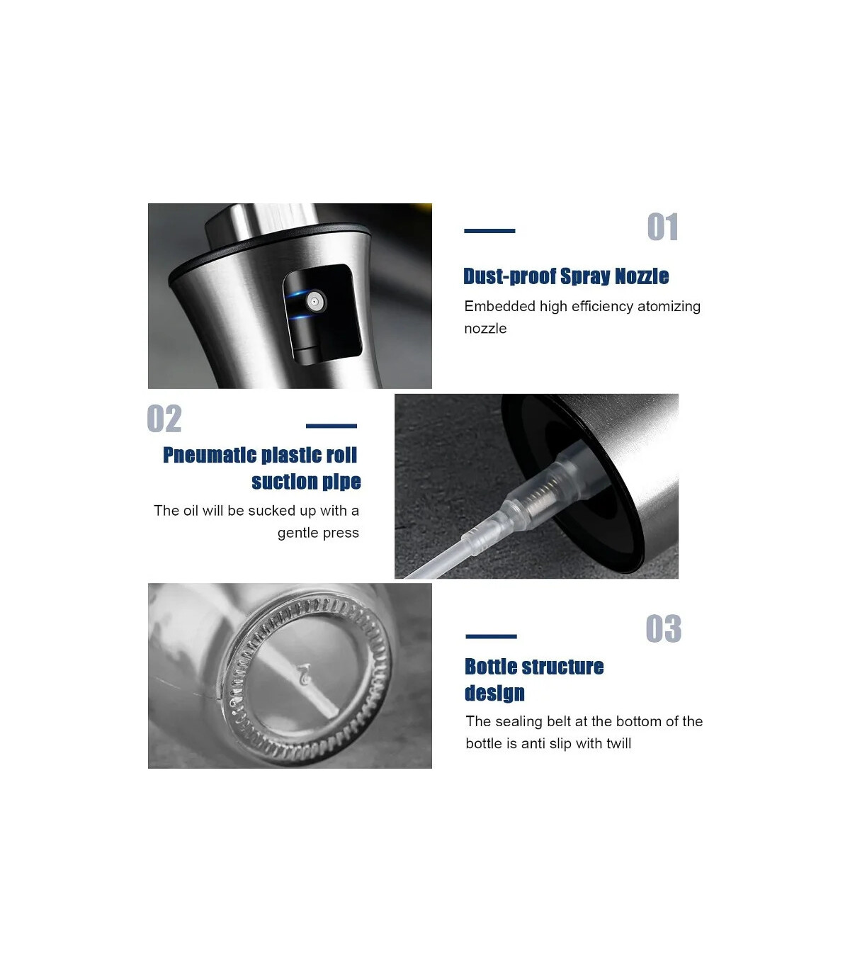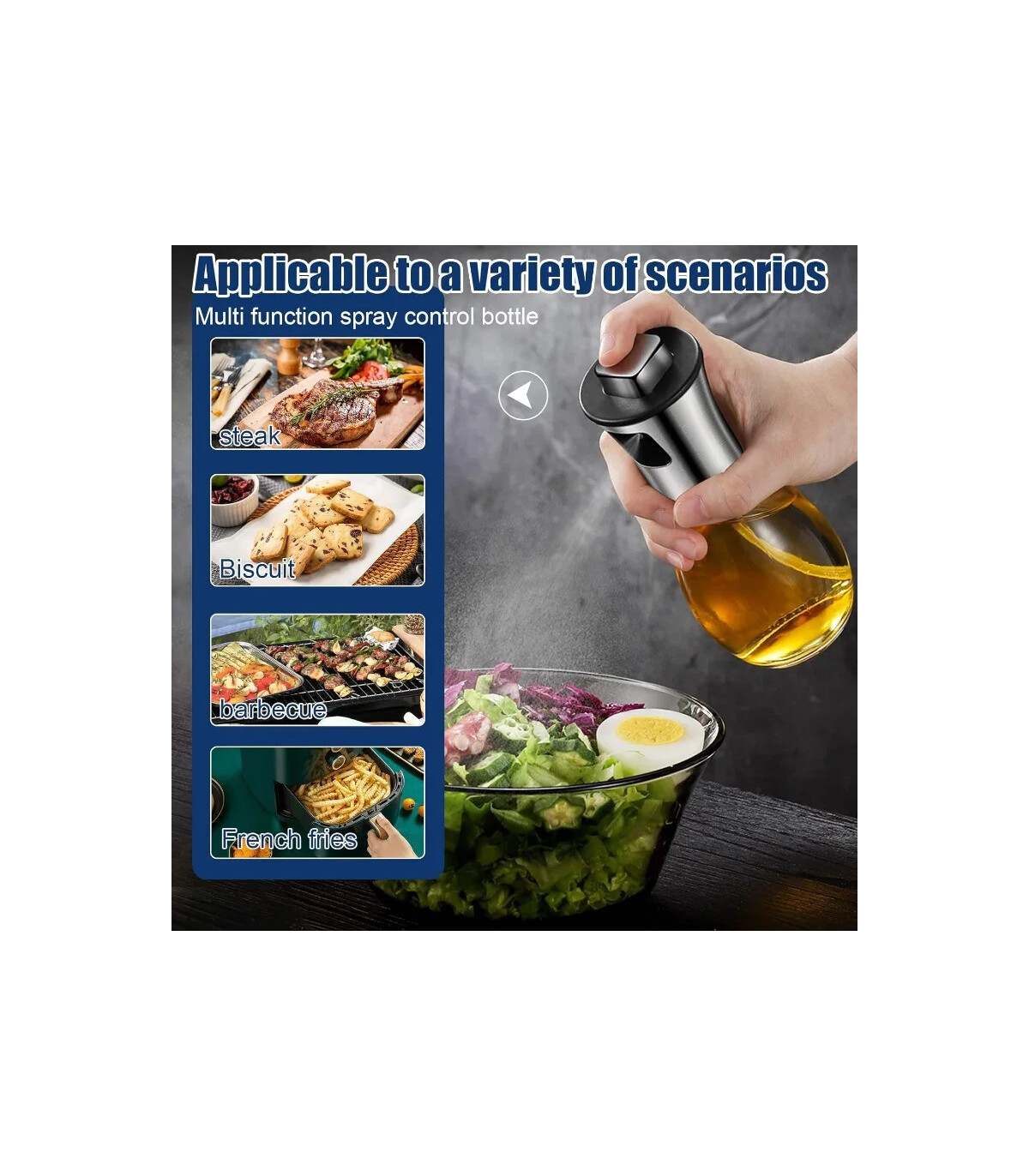 【Diseño de botón mejorado】 El pulverizador de aceite para cocinar tiene un diseño cuadrado en el botón, lo que te brinda una nueva experiencia de pulverización, que puede controlar mejor la cantidad de aceite y brindarte un estilo de vida saludable. El pulverizador de aceite es un práctico gadget de cocina.