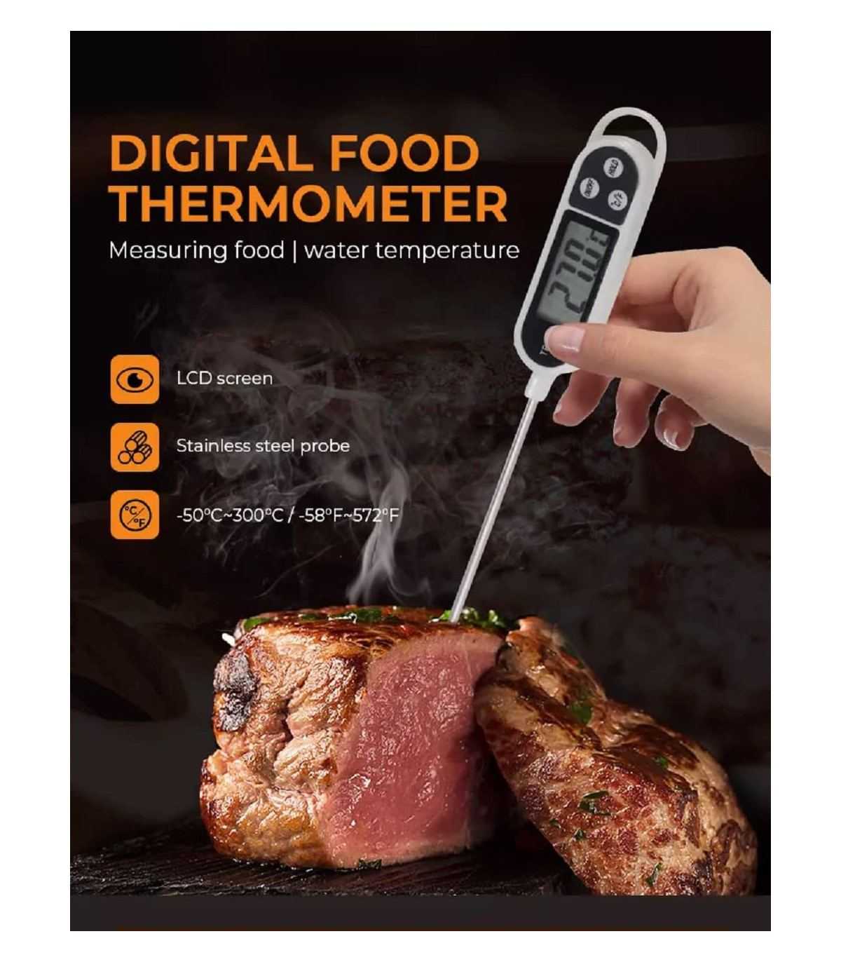 Lire la suiteThermomètre digital avec sonde de capteur en acier inoxydable 304, haute précision, mesurer le température instantanée 5 Secondes.
