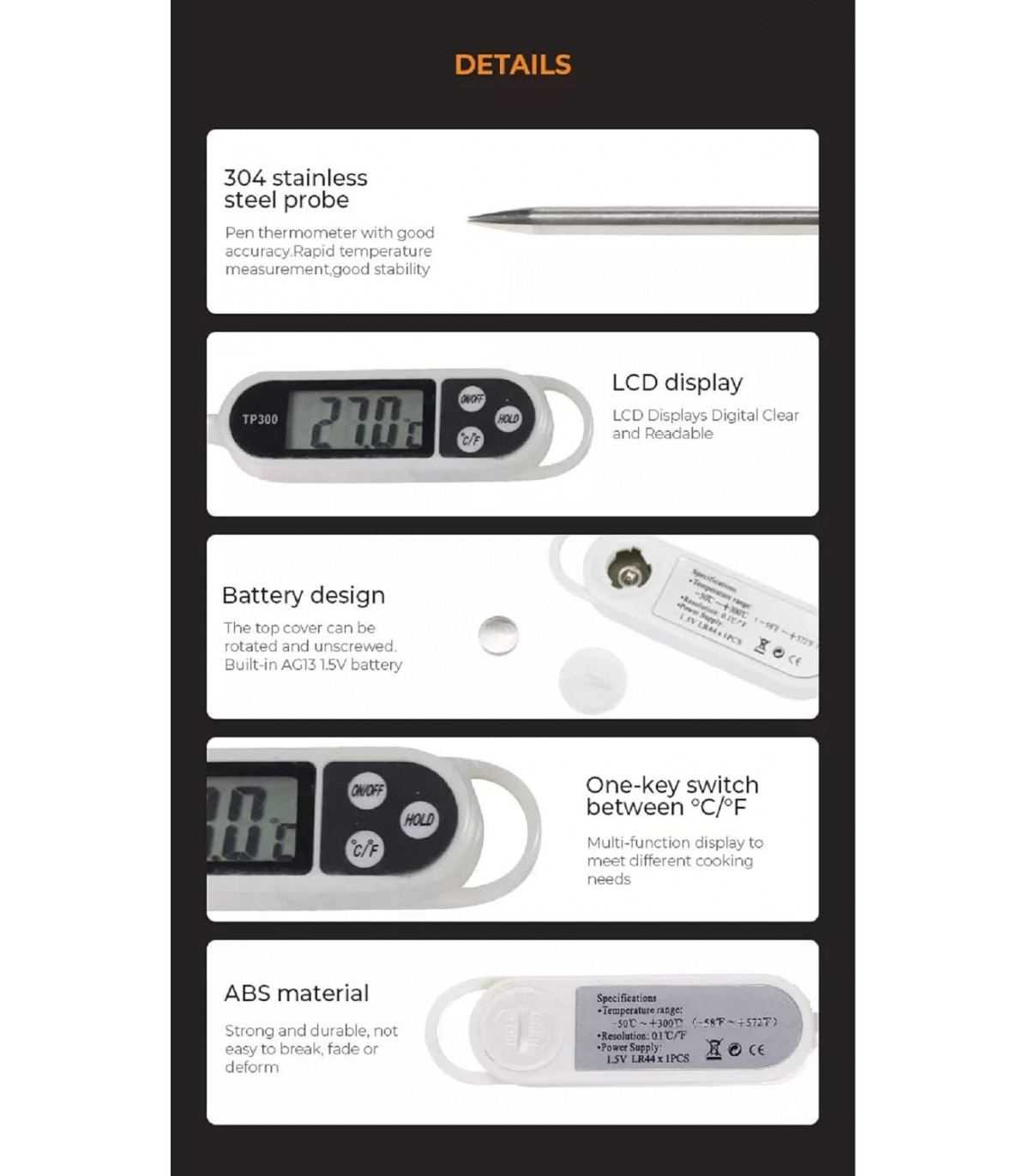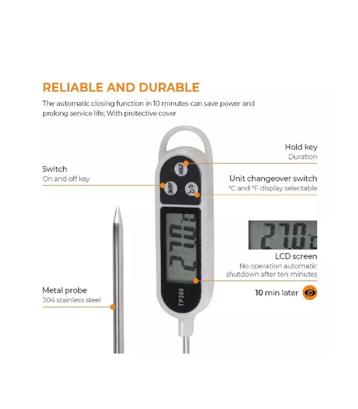 Longueur de la Sonde: 5.7 pouces, cela vous empêche de brûler vos mains tout en mesurant.