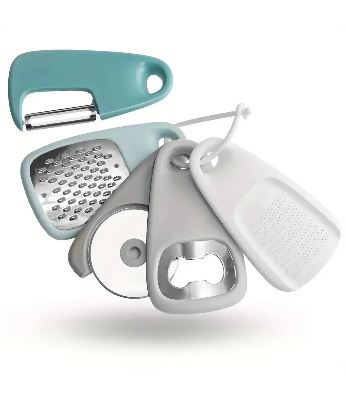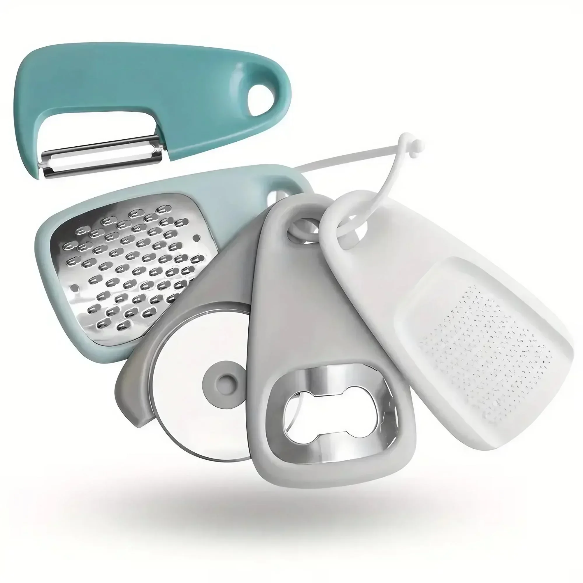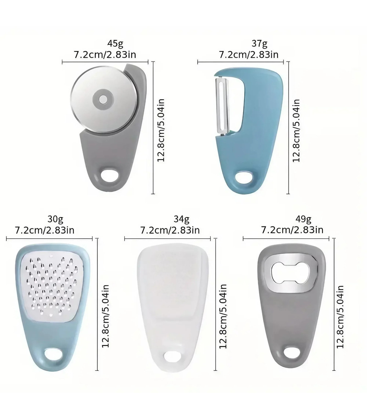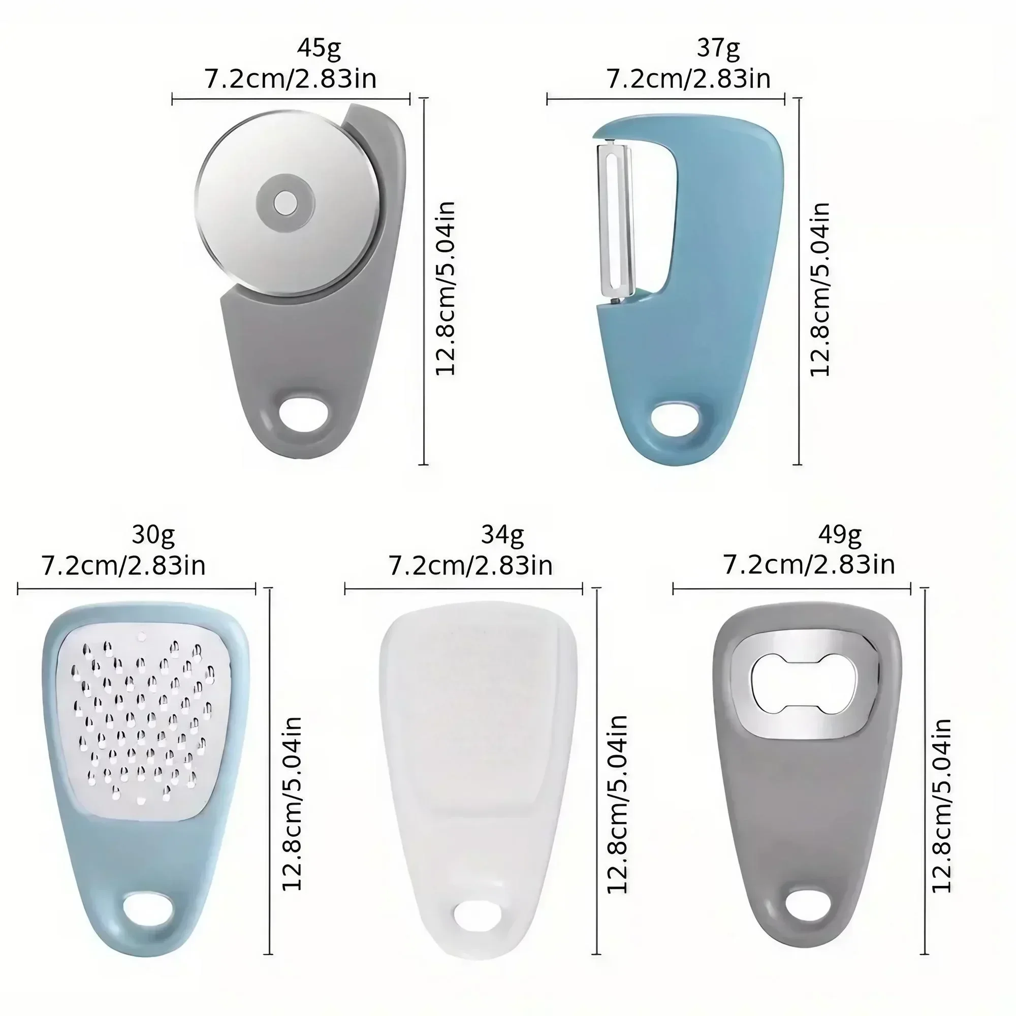 [1 Set(5Pcs) Blue] Ensemble d'outils de cuisine multifonctionnels 5 en 1, éplucheur, coupe-Pizza, broyeur, râpe, ouvre-bouteille pour la cuisine et le Camping à domicile Ce produit correspond uniquement à la première image. Ustensiles de cuisine polyvalents : Cet ensemble de 5 pièces comprend tous les outils essentiels dont vous avez besoin pour cuisiner, camper et bien plus encore.[1 Set(5Pcs) Blue] Ensemble d'outils de cuisine multifonctionnels 5 en 1, éplucheur, coupe-Pizza, broyeur, râpe, ouvre-bouteille pour la cuisine et le Camping à domicile