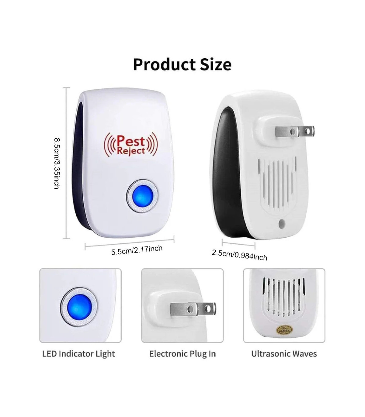 5. Contrôle polyvalent des parasites : cible efficacement un large éventail de parasites, notamment les cafards, les souris, les araignées, les fourmis, les insectes et les moustiques.Ce dispositif antiparasitaire garantit que votre espace reste exempt d'envahisseurs indésirables, améliorant ainsi le confort et la propreté.