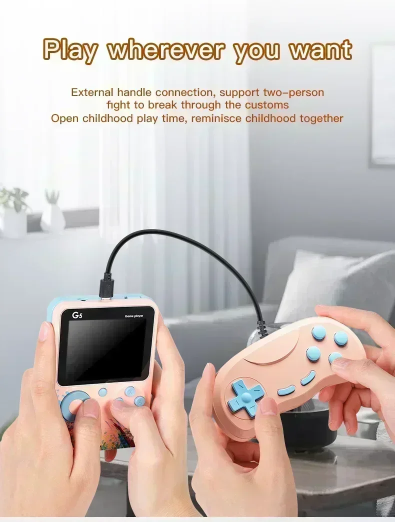 Lire la suiteConsole de jeu portable G5 Mini avec poignée couleur Macaron pour enfants, console rétro portable pour joueurs de jeu, écran LCD couleur de 2,8 pouces, 8 bits