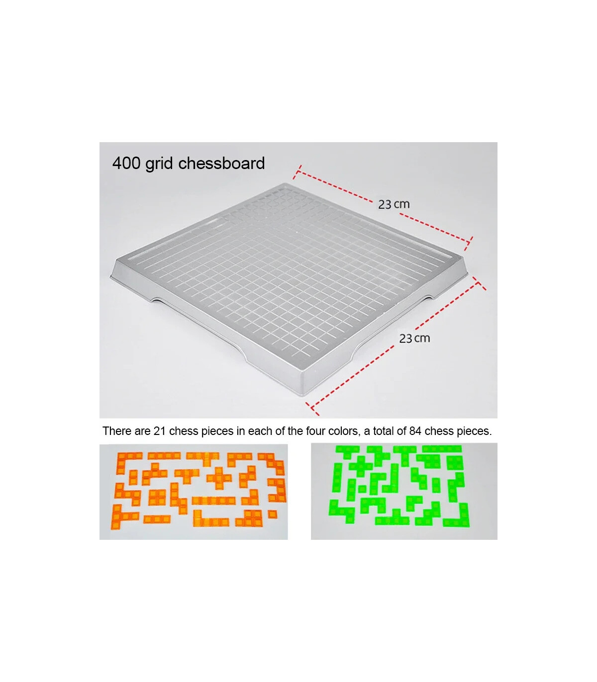 [4 Player] Puzzle intellectuel pour enfants, planche de stratégie, jouets éducatifs, jeu de carrés colorés, fête de famille, jeux de puzzle de bureau d'intérieur Ce produit correspond uniquement à la première image. Comment jouer : Chaque joueur choisit un ensemble de 21 pièces d'échecs colorées et les met à tour de rôle sur l'échiquier.La première pièce d'échecs du joueur doit être placée au coin de l'échiquier.[4 Player] Puzzle intellectuel pour enfants, planche de stratégie, jouets éducatifs, jeu de carrés colorés, fête de famille, jeux de puzzle de bureau d'intérieur