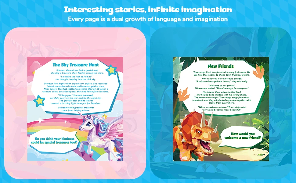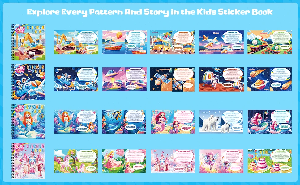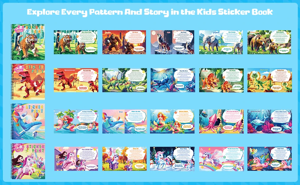 4.🎨 Stimule la créativité et l'imagination : derrière chaque motif d'autocollants se trouve un mini-story amusant et soigneusement conçu!Ces histoires engageantes, étroitement liées au motif, ouvrent la porte à l'imagination de votre enfant.Chaque histoire est associée à une question ouverte ci-dessous – aucune réponse correcte – conçue uniquement pour enflammer la curiosité, la pensée indépendante et l'imagination débridée.Cela offre de l'espace pour une expression créative libre, encourageant des perspectives uniques et renforçant la confiance intrinsèque grâce à l'exploration, laissant leur imagination voler librement!