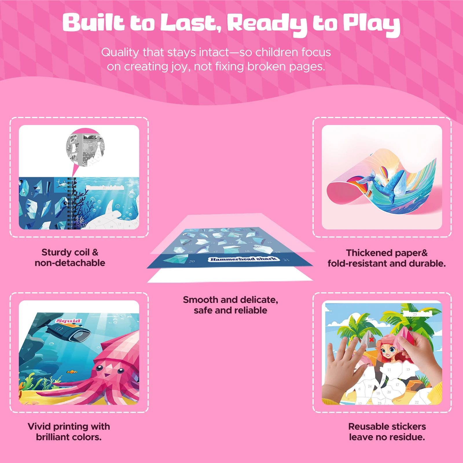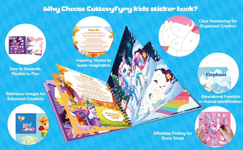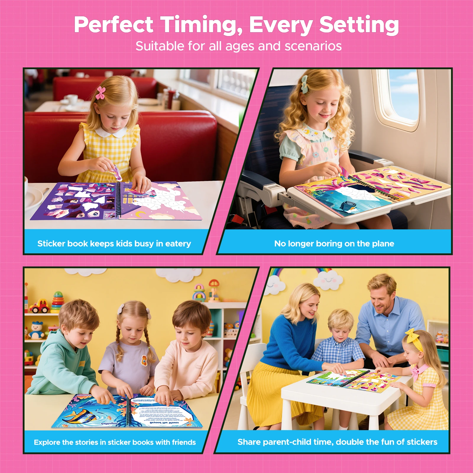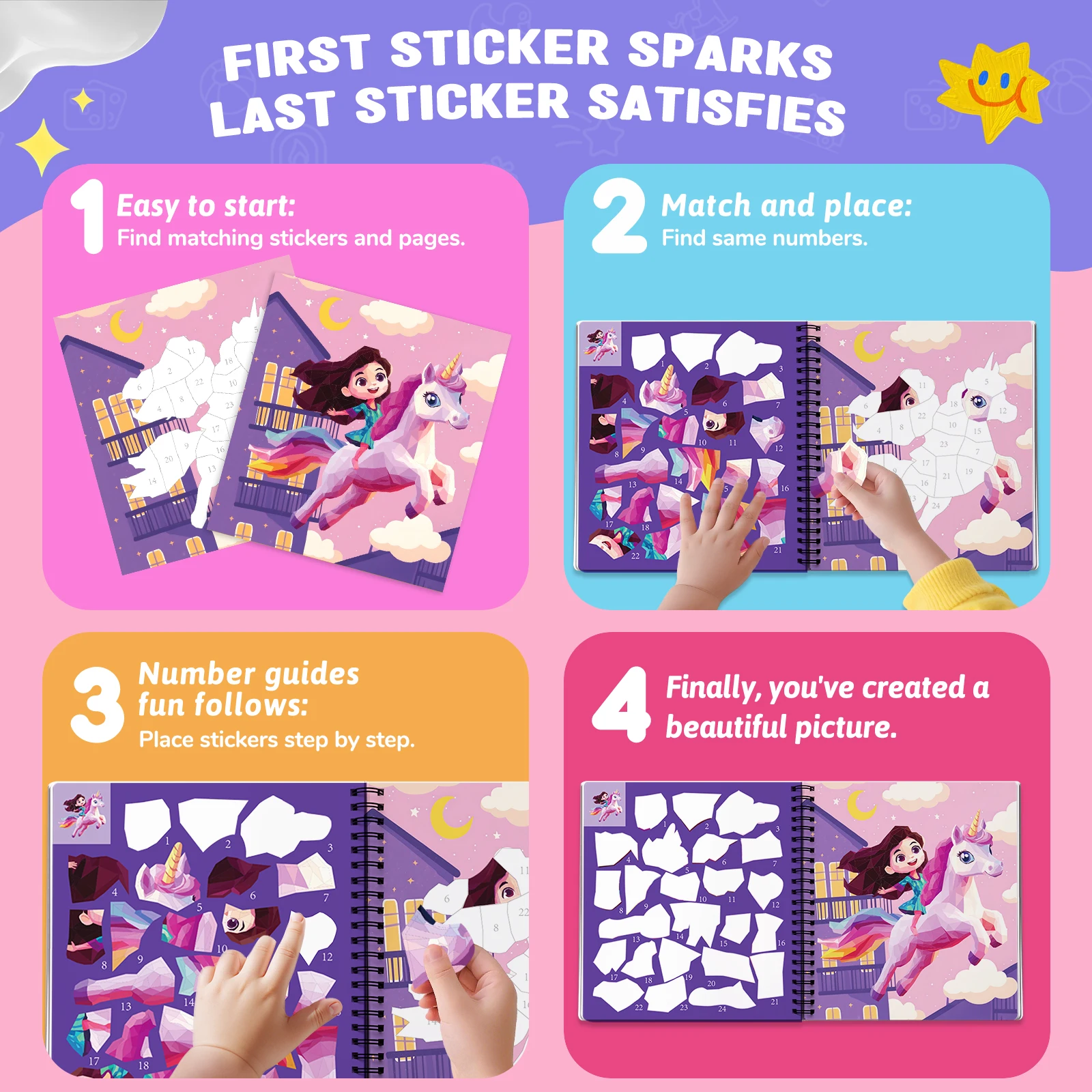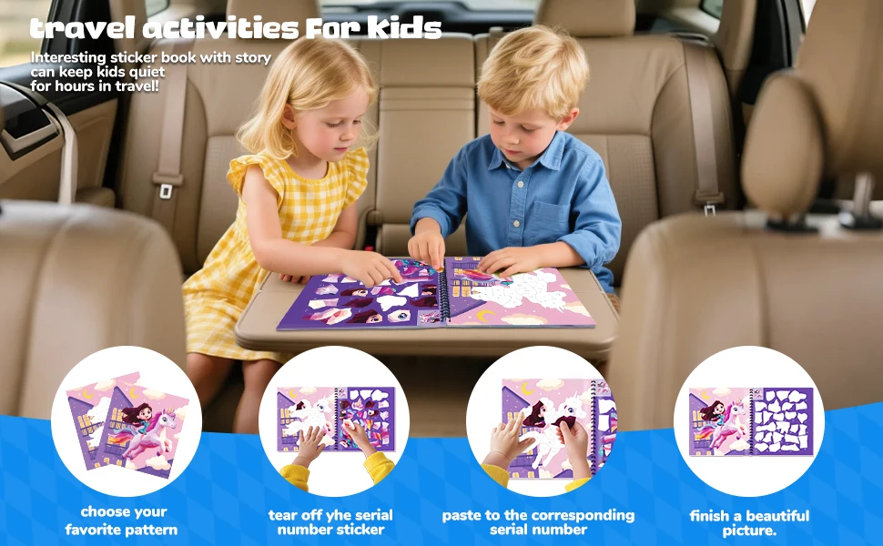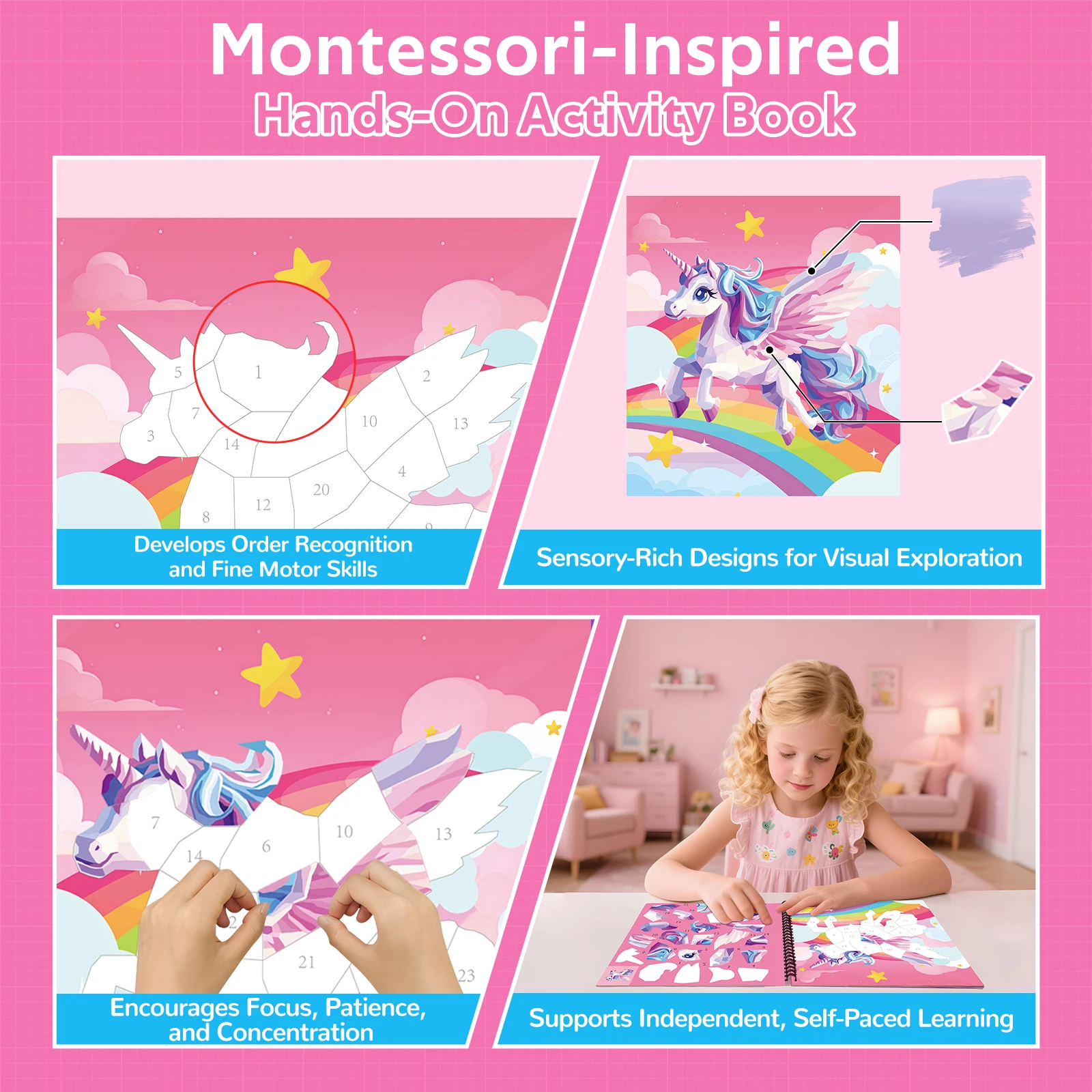 3.🧠 Concentration approfondie et patience : découvrez la « magie Montessori » d'une profonde mise au point!Chaque page des puzzles est conçue pour être une tâche complète et réalisable.Le processus d'absorption de sélectionnement, de pelage, de placement et de lissage des autocollants cultive naturellement une portée d'attention prolongée, la patience et la capacité de voir une tâche grâce à la réalisation – des compétences de vie vitales.