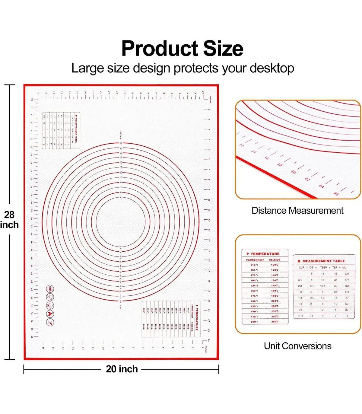 Questo tappetino è realizzato in silicone alimentare di alta qualità ed è ideale per lavorare con materiali appiccicosi, quindi puoi godere del miglior tappetino da forno antiaderente se lo hai ora. È molto più facile stendere l'impasto, la pasta, la crosta della pizza, il pane, i biscotti fatti in casa e la pasta per biscotti.