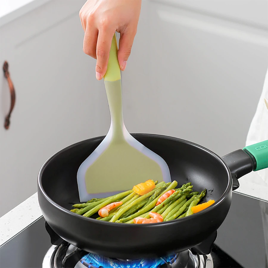 [1PC green] Spatule à jade en silicone multicolore, poêle antiadhésive, spatule à frire résistante aux hautes températures, grattoir de cuisine, outil de cuisine 1 pièce Ce produit correspond uniquement à la première image.[1PC green] Spatule à jade en silicone multicolore, poêle antiadhésive, spatule à frire résistante aux hautes températures, grattoir de cuisine, outil de cuisine 1 pièce