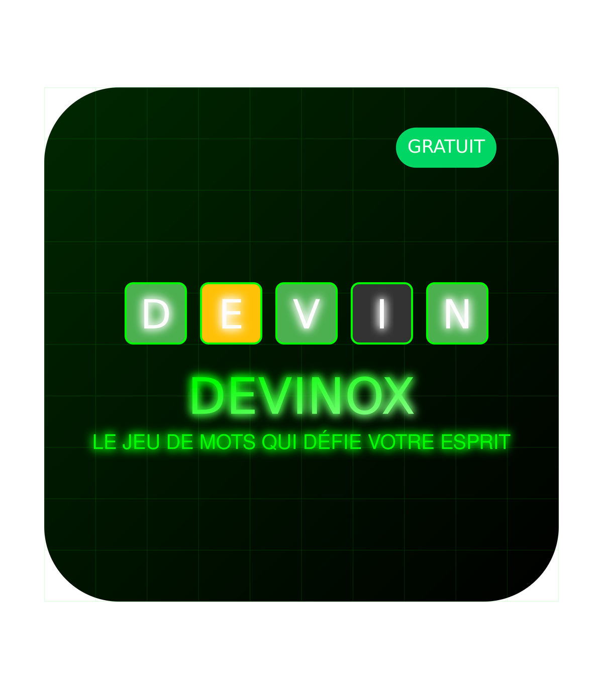 Lire la suiteDEVINOX è un avvincente gioco di parole ispirato a Wordle/Motus con un'interfaccia in stile Matrix. Indovina parole da 4 a 11 lettere con indizi colorati. Multilingue (FR/EN), personalizzabile e 100% GRATUITO.