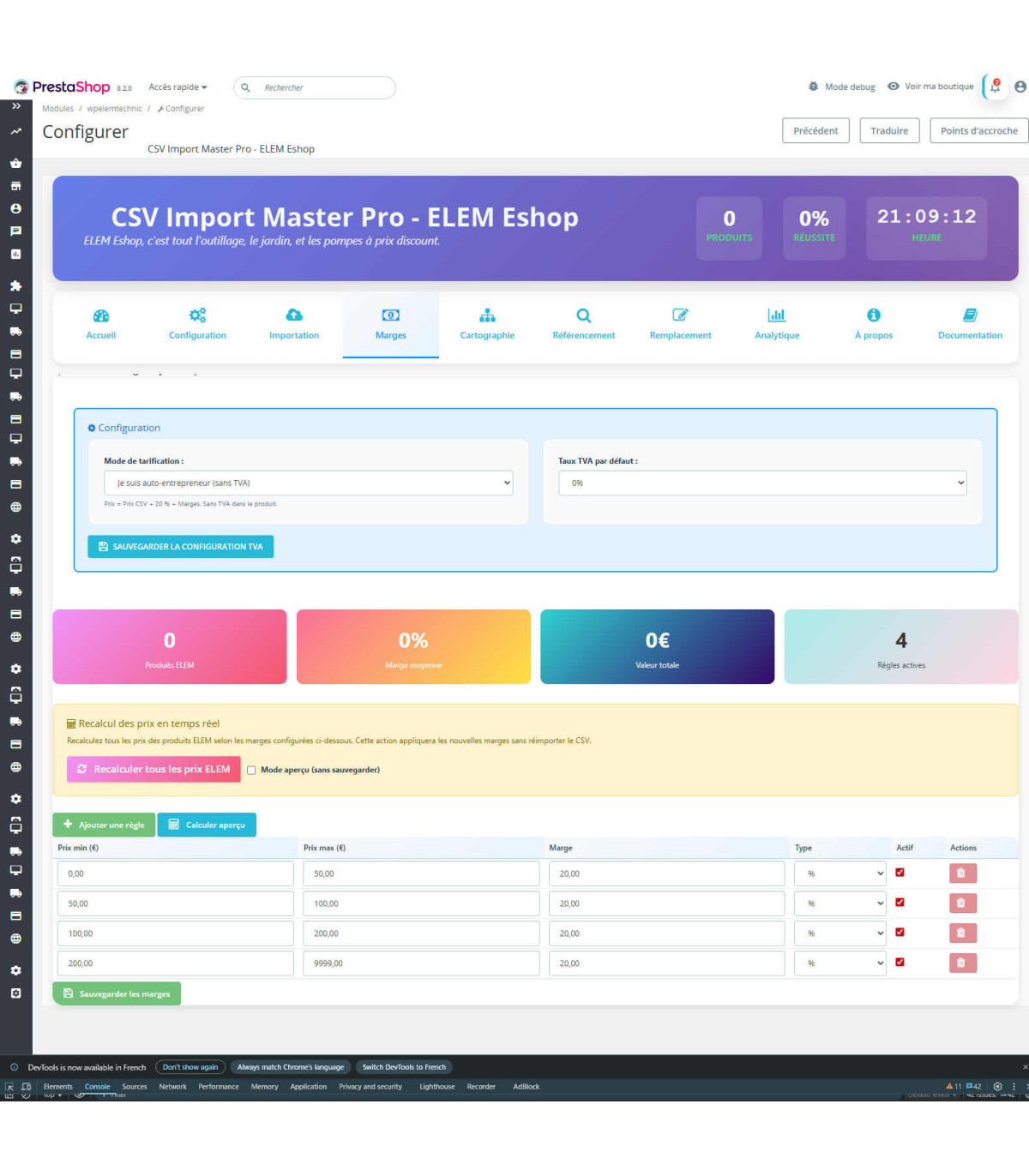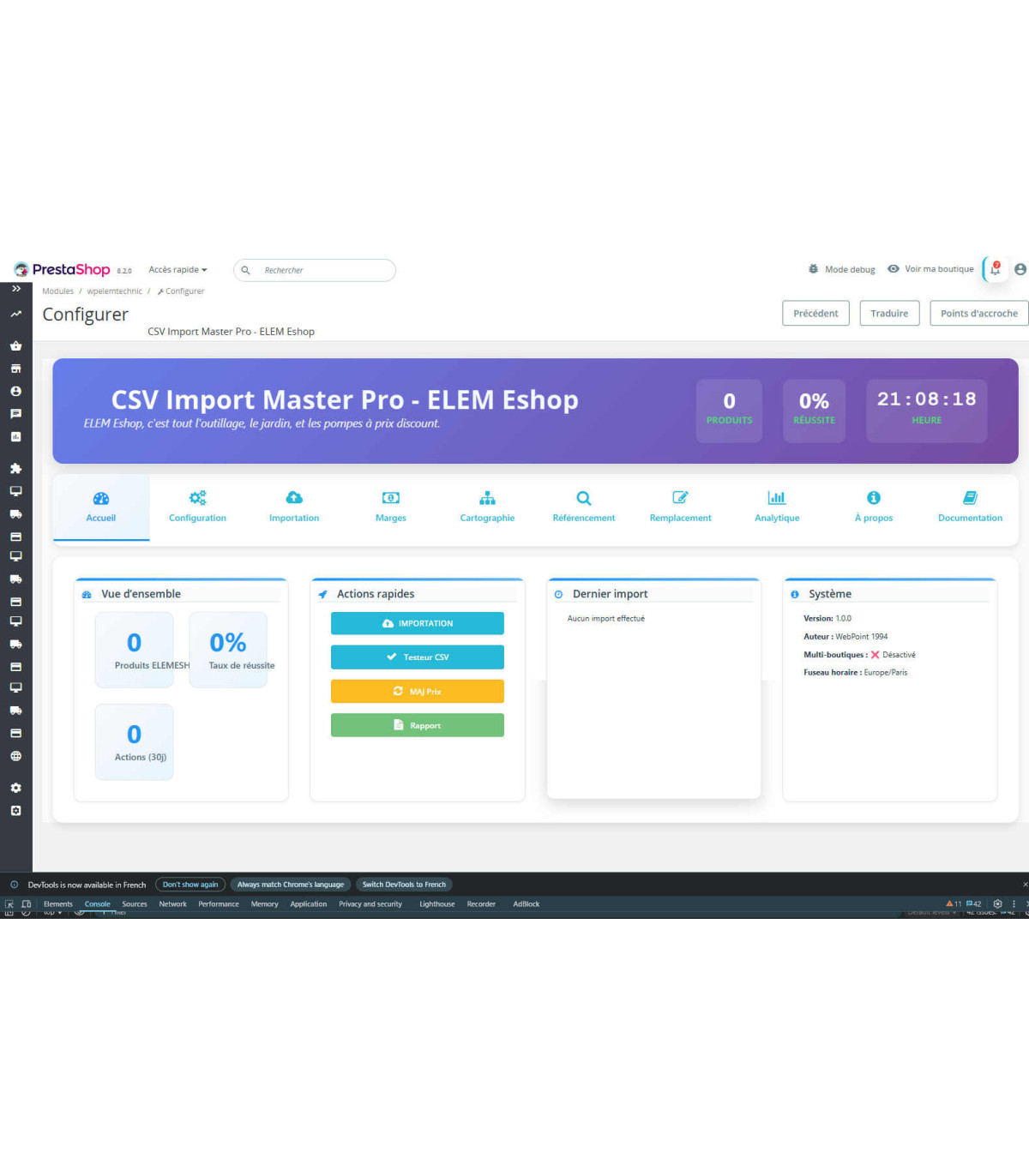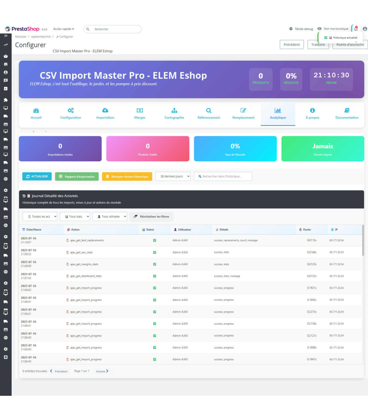 Un modulo PrestaShop intelligente che trasforma le tue importazioni in opportunità strategiche. Importa, analizza e ottimizza con facilità.