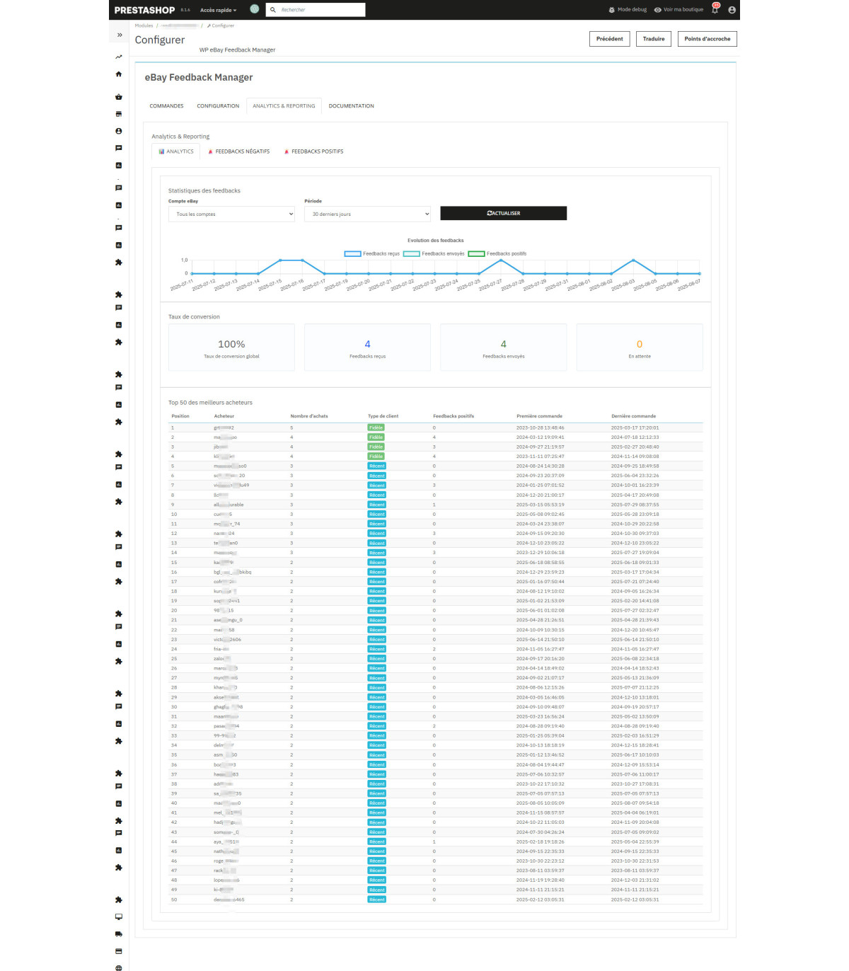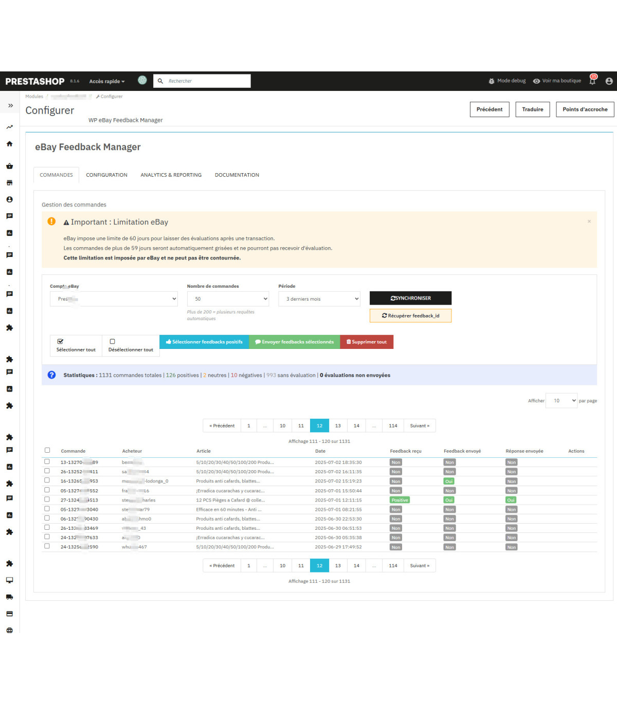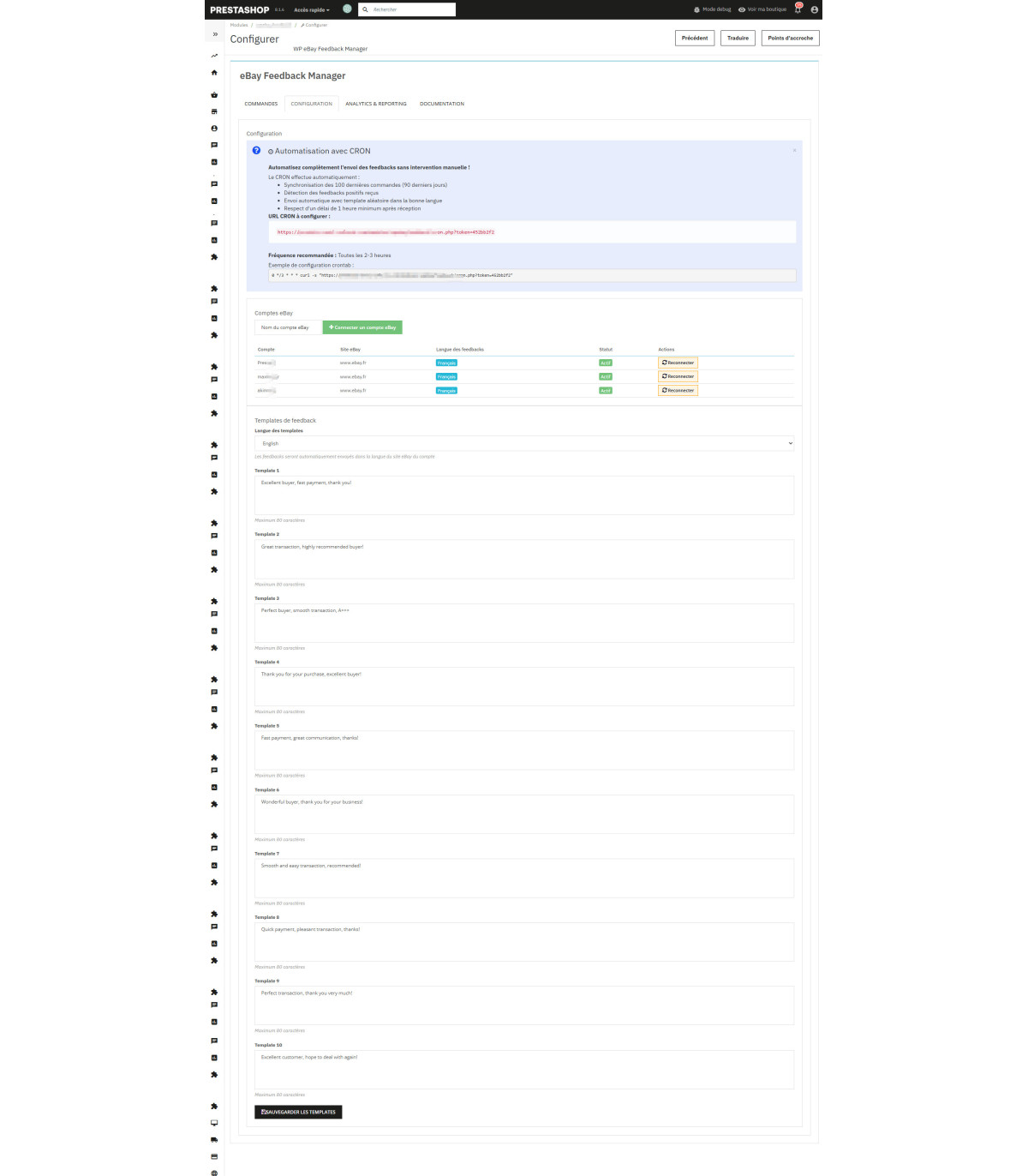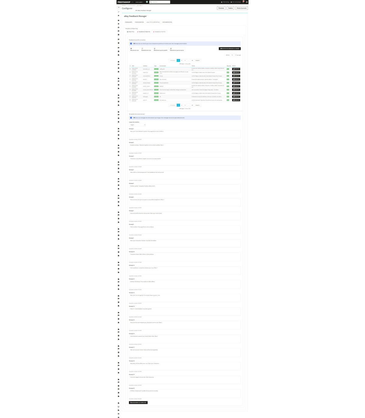 Lire la suiteTrasforma la tua reputazione su eBay con il nostro modulo premium PrestaShop che automatizza il 100% dei tuoi feedback .
