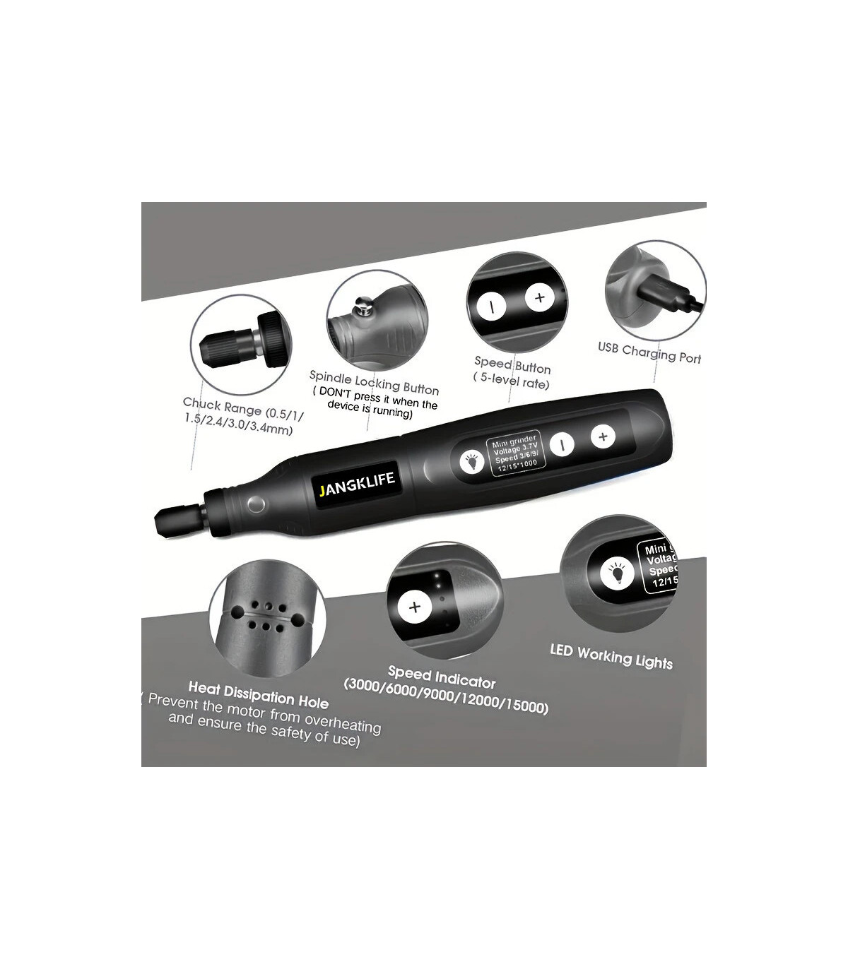 Lire la suite[Verde-24pz] JANGKLIFE Kit USB di utensili rotanti senza fili penna da incisione su legno fai da te per gioielli metallo vetro Mini trapano senza fili