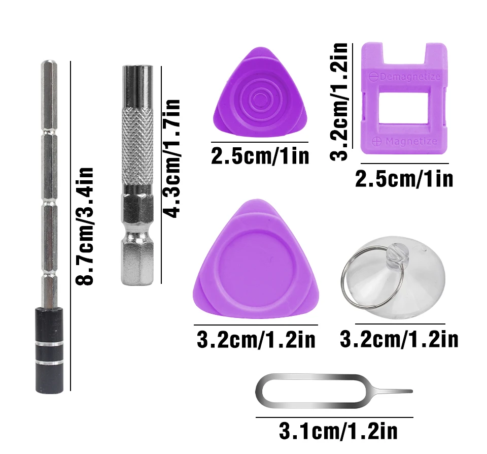 Dettagli del kit di attrezzi 115-in-1: 98 cacciaviti + 17 accessori per smontaggio