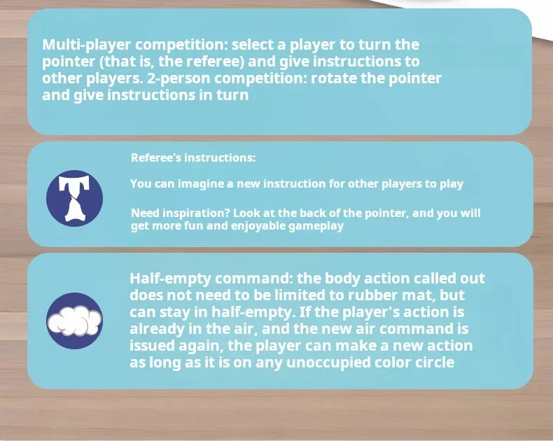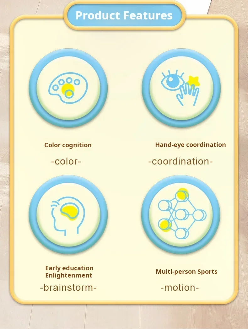 Esercizio di coordinazione fisica: il gioco richiede che i giocatori mettano le mani e i piedi su cerchi di colori diversi secondo le istruzioni, che possono esercitare la coordinazione fisica, il senso dell'equilibrio e la capacità di reazione dei giocatori.